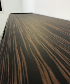 Außergewöhnlicher Art Deco Konsolentisch mit Klavierlackdetails. Er enthält 8 Schubladen, welche durch eine akzentuierende Chromleiste getrennt sind. Furniert mit Makassarholz hat das Stück eine wunderschöne Maserung mit tollen Farbtönen.