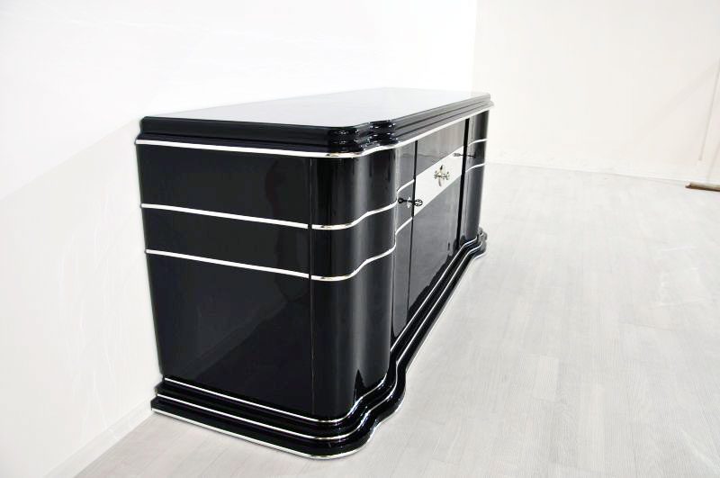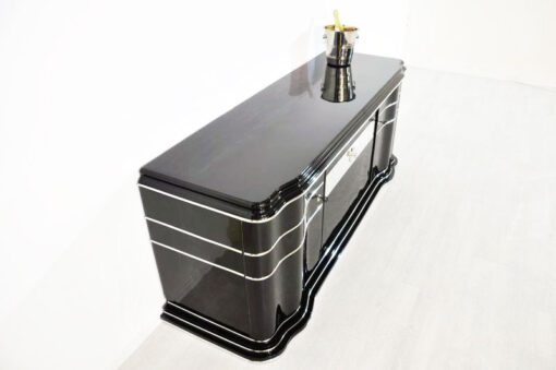 Wundervolles Longboard mit einem Art Deco Design. Mit einem einzigartigen Spiegelstreifen und feine Chromdetails.Hochwertiges Stilmöbel in Handarbeit gefertigt.