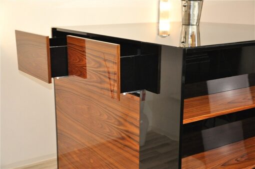 Für ein Londoner 5 Sterne Hotel durften wir dieses einmalige Möbel entwerfen und designen. Cube Lobby-Sideboard – Klavierlack innen & außen