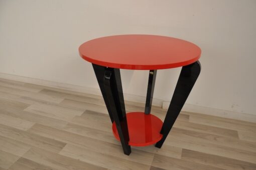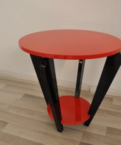 Typischer Art Deco Beistelltisch – lackiert in einem einzigartigem Feuerrot! Dieses Möbelstück verbindet klassisches Design mit einer tollen Farbe.