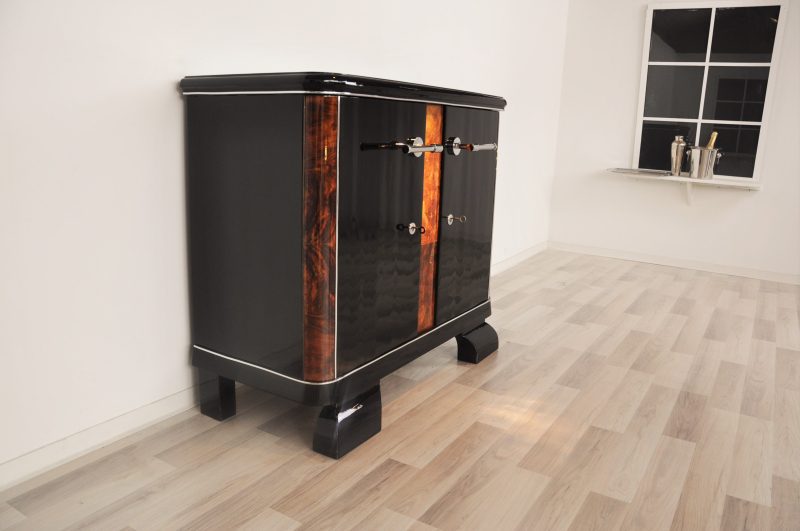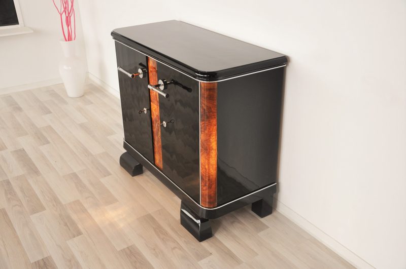 Schöne Art Deco Kommode aus Frankreich. Typisches Art Deco Design mit abgerundeten Ecken, französischen Füßen und feinen Wurzelholzdetails.