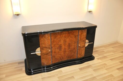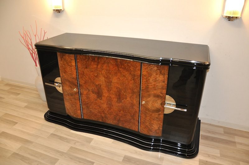 Wundervolles Art Deco Buffet mit einer tollen Form. Geschwungener Korpus und Türen sowie ein großartiger Treppenfuß zeichnen dieses Meisterstück aus.