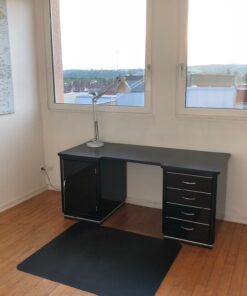 Großartiger Stahlschreibtisch der Manufaktur Müller. Mit Firmenplakette. Eleganter Schreibtisch mit viel Stauraum.