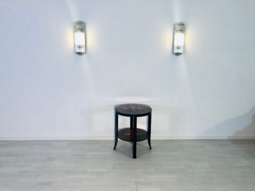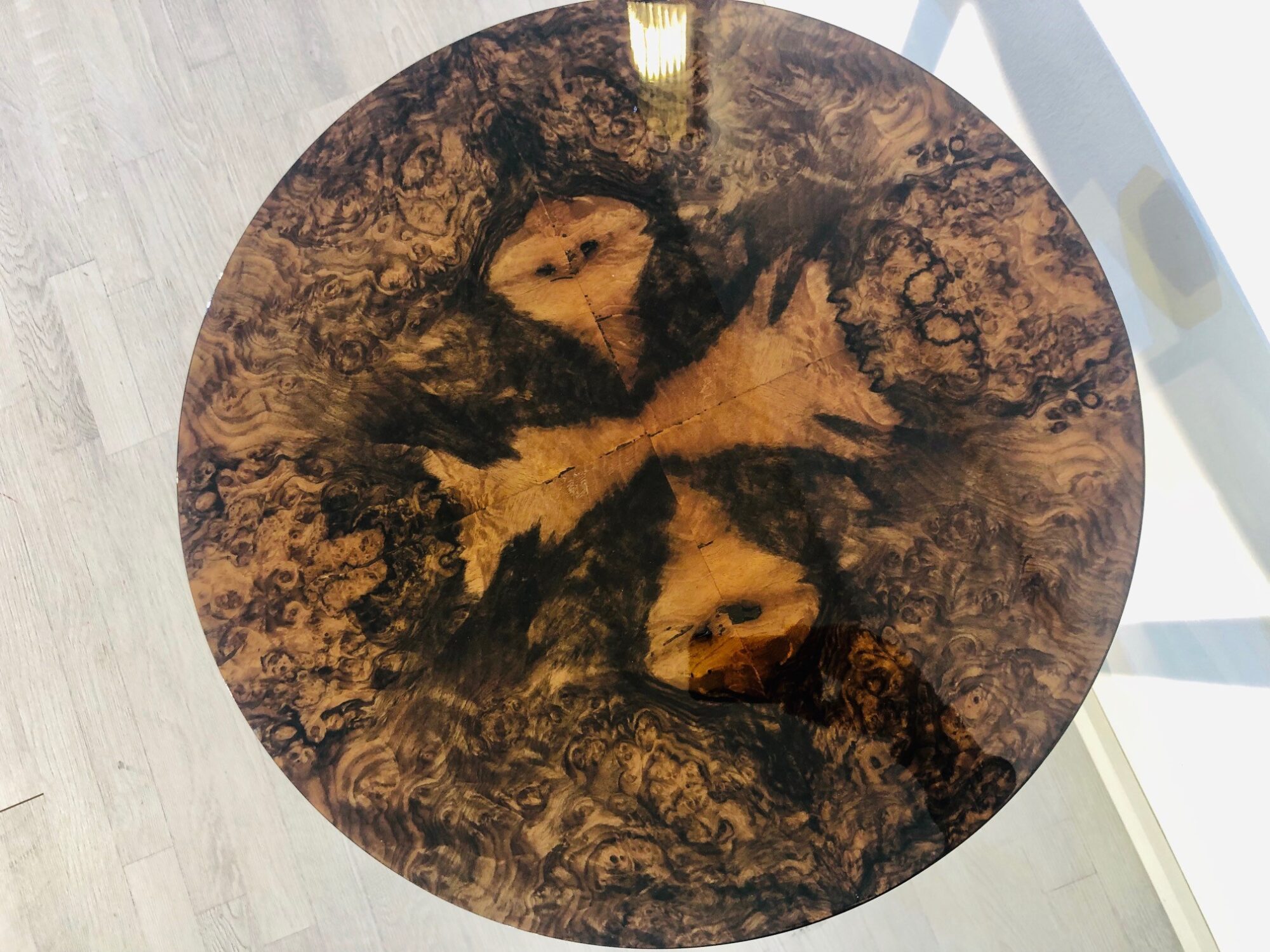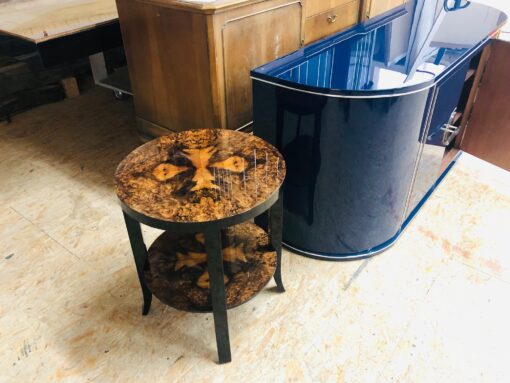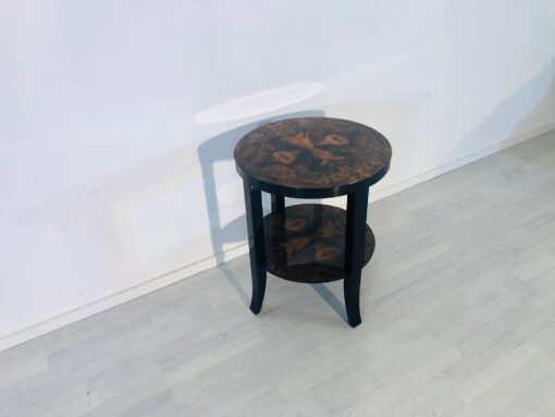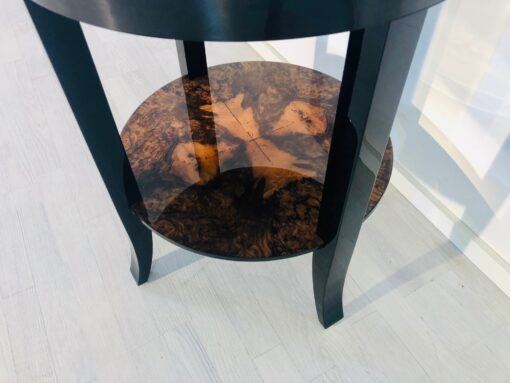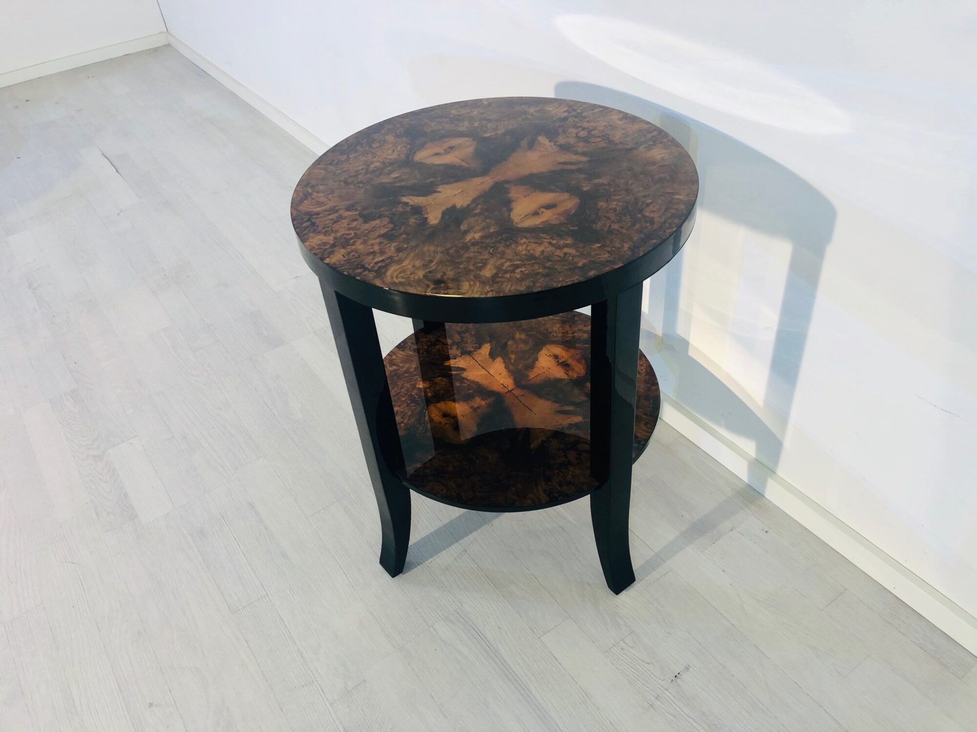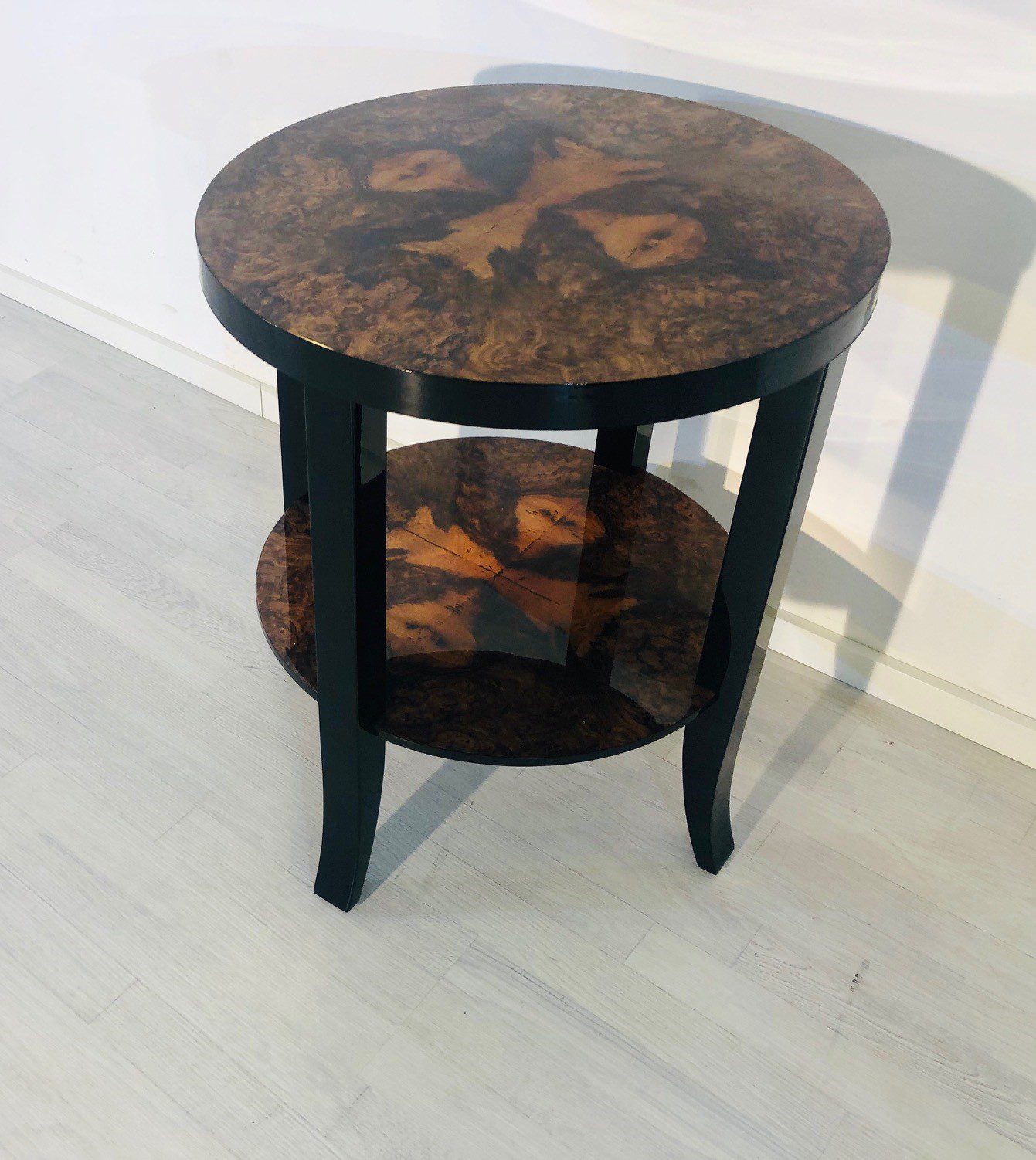 Wundervoller Beistelltisch aus den 1930er Jahren. Die Tischplatte ist aus Nussbaumholz, Beine aus handpoliertem Hochglanzklavierlack. Durch das schlichte aber elegante Design ist der Tisch ein echter Hingucker und verschönert jedes Wohnzimmer. Wunderschönes Art Deco Design.