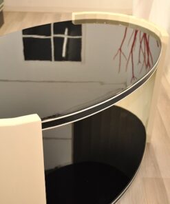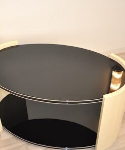Einmaliger Art Deco Tisch in einem einzigartigen Design. Dieser Couchtisch kommt im zweifarbig lackiert – Elfenbein und Hochglanzschwarz