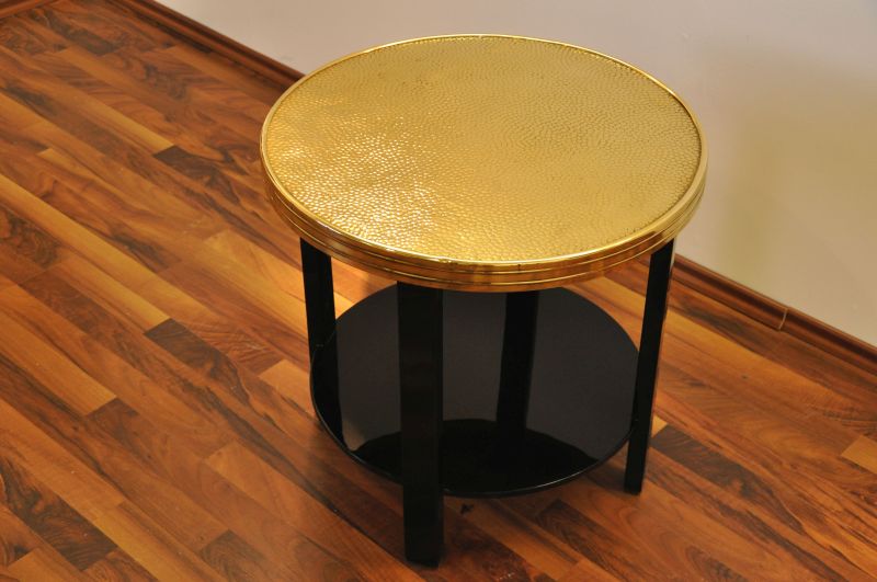 Wundervoller kleiner Beistelltisch aus Deutschland. Die goldene Platte und das klassische Design machen dieses einzigartige Möbelstück aus.