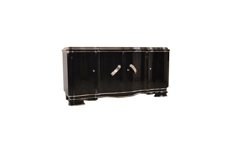 Dieses 2,10 Meter breite Sideboard aus Belgien bietet enorm viel Platz. Zwei dieser Sideboards wurden Ende der 1920er Jahre von einem Schreiner aus Brüssel gebaut. Wir haben diese wundervollen Möbelstücke 2014 restauriert und das Design durch große Chromgriffe ergänzt.